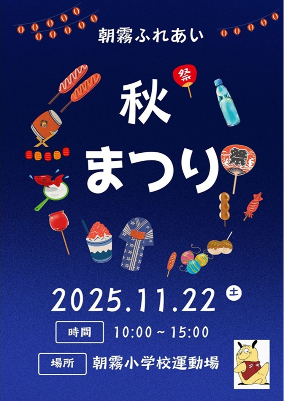 朝霧小学校運動場 11月22日(土) ※昨年は夏祭りが開催されましたが、今年は秋祭りとして開催されます。 - 2025あかしヒューマンフェスタ ~戦後80年、明石空襲を語り継ぐ~