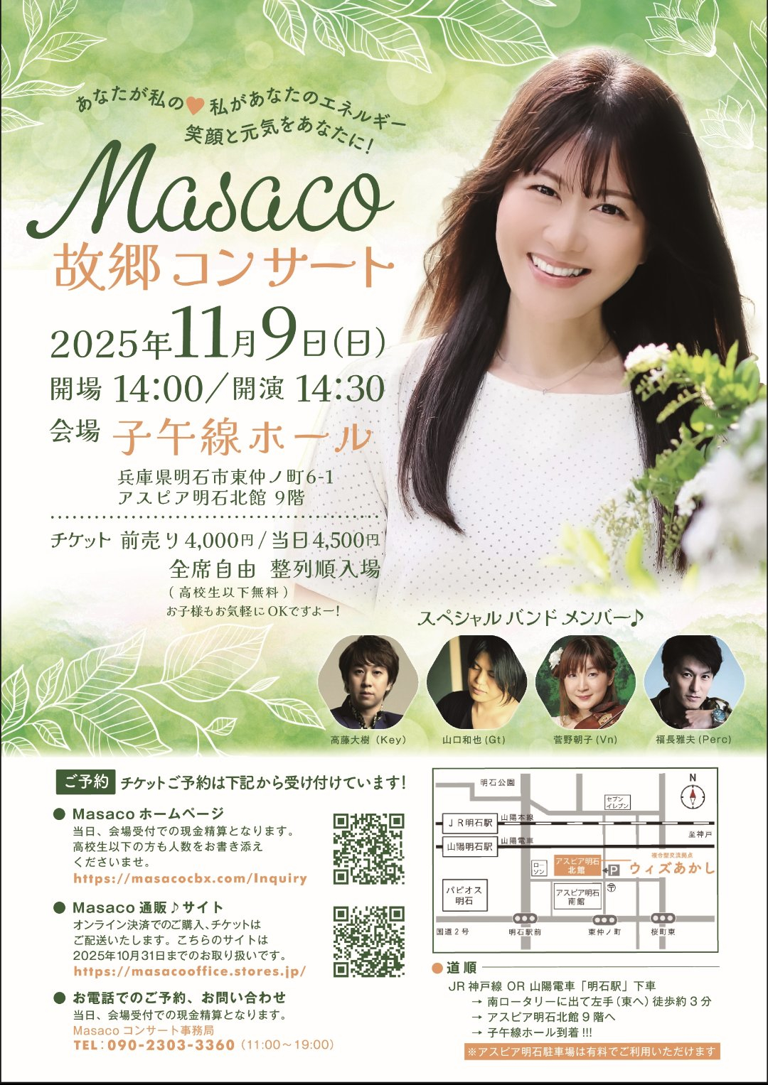 明石市立西部市民会館ホール 11月9日(日) - Masaco 故郷コンサート