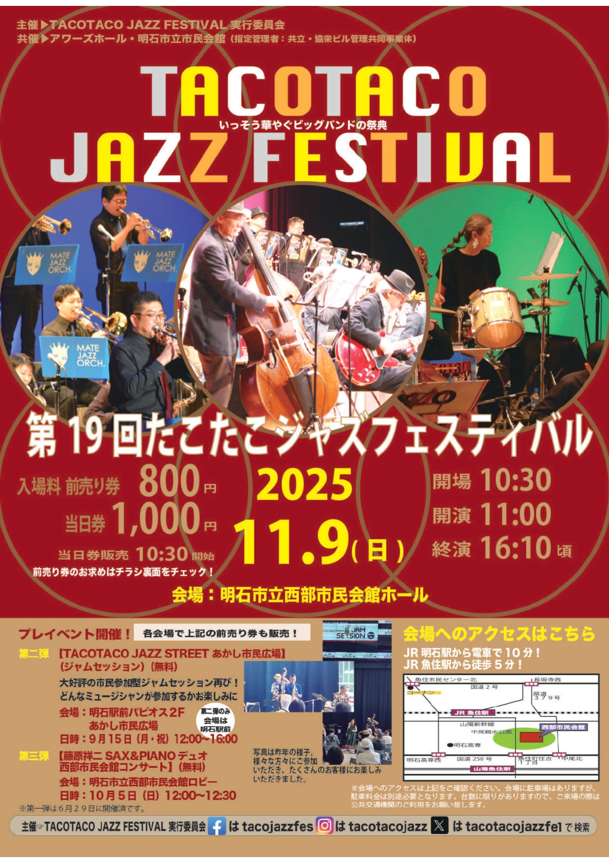 第19回 TACOTACO JAZZ FESTIVAL - イベント情報 アワーズネット - 明石市立市民会館等Webサイト